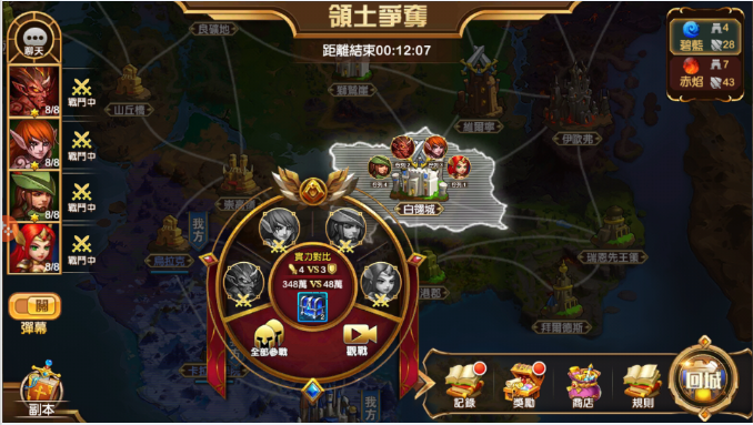 4.1 領土爭奪開啟至20:45後所有玩家停止派遣,但是已經派遣的戰鬥會繼續計算直至戰鬥結束