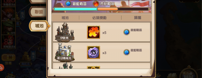 3.3 選擇成功後相應隊伍進入對應城池進攻\防守列表,該列表以城池為單位每場戰鬥10秒結算