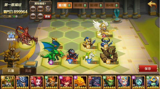 2.4 每個玩家可派遣4組部隊,每個部隊可上陣1名英雄和8個兵團